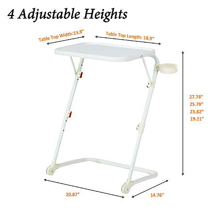 - Designed to fold completely, including metal legs and cup holder, for easy storage under beds, sofas, or tables, and convenient transportation.
