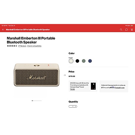 The Emberton III Portable Bluetooth Speaker isn't just a speaker—it's your ultimate travel companion. Whether you're tossing it in your bag, in the backseat, or taking it to the beach, this rugged speaker is built to handle whatever comes your way with its IP67 dust and waterproof rating.¹ Get ready for 360 degrees of sound powered by Marshall's signature True Stereophonic technology, where every spot is a sweet spot. No matter where you are, the sound is always vibrant, balanced, and loud. With up to 32 hours of playtime, a quick 20-minute charge giving you 6 hours of music,² and built-in battery-saving features, you won't miss a beat. The Emberton III keeps the spirit of Marshall's rock 'n' roll roots alive with its classic grill and textured sleeve, now with a built-in mic and Bluetooth LE Audio support. Plus, it's made in part with up to 79% recycled plastic and is PVC-free, so you can enjoy the music while feeling good about the planet. Stay up to date with software updates via the Marshall App and keep the music rocking for the long haul.