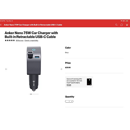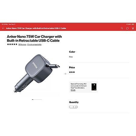 The Nano 75W Car Charger with Built-in Retractable USB-C Cable is a compact car charger that features a smart retractable cable that eliminates tangled wires and messy dashboards. A gentle pull extends the 2.3-foot cord, and it elegantly retracts back when not in use. Power up two devices at once, such as your laptop and smartphone, with its dual ports and a total output of 75W (USB-C max 45W). This allows you to get back to a full battery faster. The cutting-edge ActiveShield technology monitors your devices' temperature in real-time, intelligently adjusting power to prevent overheating and ensure stable connections. The charger's versatile USB-C port is highly compatible with a wide range of mobile devices, including the latest smartphones, Samsung tablets, and gaming consoles, ensuring fast charging for all your mobile needs. It's not just a charger; it's your new driving companion for peace of mind on every journey.