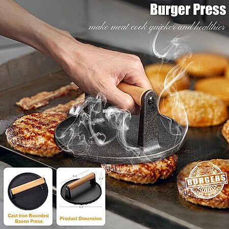 - EASY TO CLEAN & EASY TO STORE: Our griddle tool kit is dishwasher safe and easy to clean with hot water and cleaner. Hand wash recommended for the cast iron burger press. Please remember to wipe each tool dry before storage and rub some oil on the cast iron to protect it, maintain non-stick and extend its life. with coming handy carrying bag, It's convenient to take out for a backyard BBQ and easy to storage