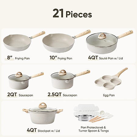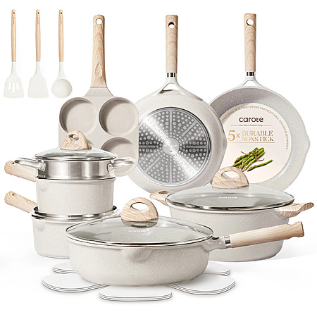 Carote 21pcs Non Stick Cookware Set Induction Ready, Beige $100