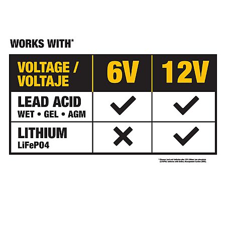- COMPATIBLITY - 6-Volt and 12-Volt AGM, GEL or WET plus lithium iron phosphate battery (LiFePO4) batteries