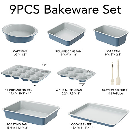 Carote 9 Pc Stackable Nonstick Bakeware Set, Includes Cookie Sheet, Muffin, Bread, Cake, Loaf & Roasting Pans $26