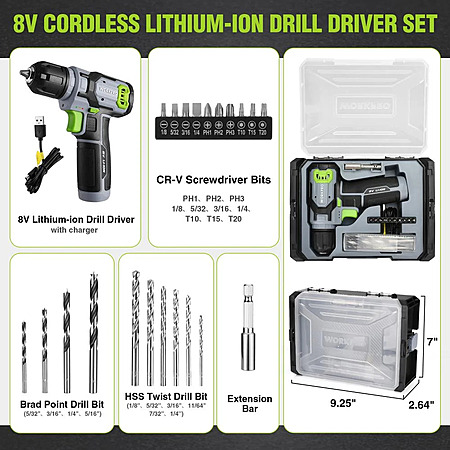 WORKPRO 8V Cordless Power Drill Set with Stackable Tool Box $19