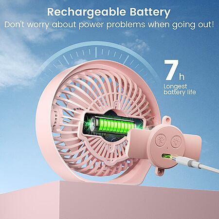 Model: BURLAN Cordless Desk Fan, Battery Operated Fan with USB, 70ft Strong Airflow Portable Fan, Quiet Operation Fan with LED Light and 360° Rotate Table Fan for Bedroom Home Office Outdoor Travel(Pink)