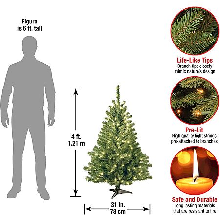 4-ft National Tree Company Pre-Lit Kincaid Spruce Mini Artificial Christmas Tree w/ Stand (Green, KCDR-40LO-S) for