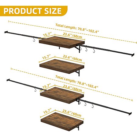 Closet system comes with 4 retractable hanger rods, measuring total length from 70.8" to 102". Fits walk-in closet spaces 6 to 9 feet.
