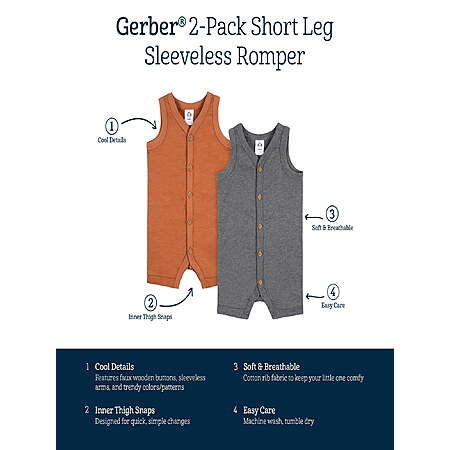 Gerber Baby Neutral Rompers, 2-Pack, Sizes Newborn - 24 Months