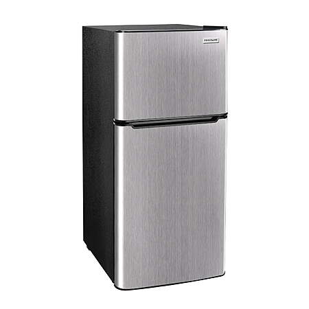 The Frigidaire Platinum Frigidaire 4.5 cu. ft. compact Refrigerator with chrome trim offers a perfect balance of spaciousness and sleekness. Its compact size allows it to fit effortlessly in any space. The top-mount full-size freezer with manual defrost and storage door provides added convenience. The slide-out shelves not only maximize storage efficiency but also add to its unique style. This refrigerator is designed with energy efficiency in mind. The clean and retro appearance, thanks to the flush-back design and door handle, makes it a great addition to your home, dorm, or office. Frigidaire EFR463 Eco-Friendly 4.5 cu.ft Refrigerator, Platinum Generous Fresh Food Capacity: Enjoy a spacious 4.5 cu. ft. interior, providing ample room for your fresh food items Easy Cleanup: The slide-out fresh food shelf simplifies cleaning, making your life easier Efficient Freezer: A separate top mount freezer with extra door storage offers additional space for your frozen goods Full Freezer Compartment: The freezer compartment is fully equipped for your frozen food storage needs Eco-Friendly: Our refrigeration system is environmentally friendly with CFC-free technology, reducing its impact on the environment Customizable Organization: Adjustable glass shelves allow you to adapt the interior layout to accommodate items of various sizes Bottle-Friendly Door Basket: The convenient door basket is designed to hold 2L bottles, keeping them easily accessible Beverage Can Dispenser: Stay organized with a built-in beverage can dispenser, making your favorite drinks readily available Optimal Cooling: The efficient compressor cooling system ensures optimal performance to keep your items fresh and cold Flexible Installation: The reversible door offers flexible installation options, adapting to your kitchen layout Precise Temperature Control: Easily control the temperature with an adjustable thermostat, ensuring your food stays at the desired level of coldness Sleek Platinum Finish: The appliance features a stylish platinum color, adding a touch of elegance to your kitchen decor