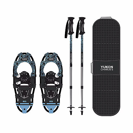 The Airhead Yukon Charlie's Snowshoe Kit is a ready-to-go kit for snowshoeing. When the snow falls, switch from regular old hiking to snowshoeing. They're lightweight and durable thanks to an aluminum frame, and the steel crampons provide grip when there is ice hidden underneath. The HDPE decking holds up against pokes from unseen rocks and sticks, while helping you float above the snow. Included with the kit is a pair of trekking poles with two sets of baskets and a bag for easy storage.