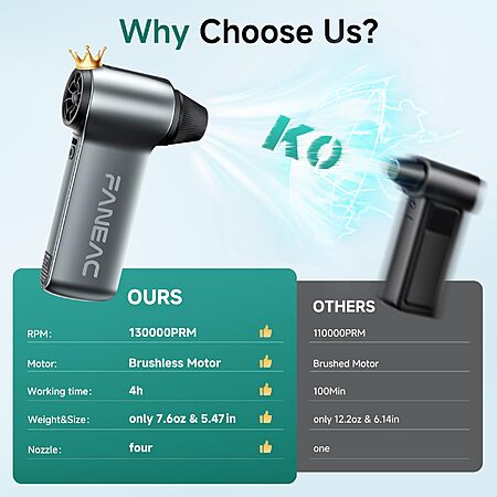 FANEAC X115 Compressed Electric Air Duster 130000RPM $19.99