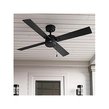 [Black Ceiling Fan] This black ceiling fan with 4 blades adds casual style, comfort and perfect illumination to any room it graces. Having a blade span of 52 inches, this outdoor ceiling fan is perfect match for large rooms!