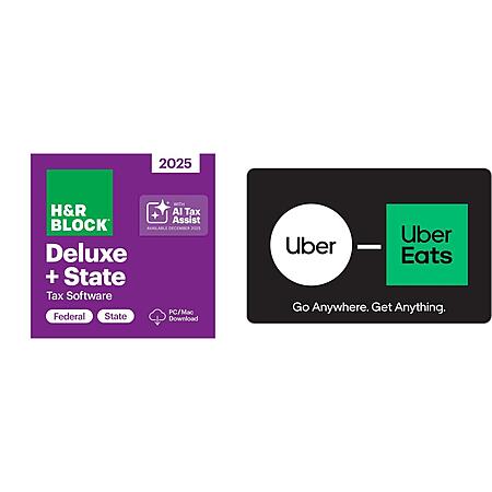 H&R Block Tax Software Deluxe + State 2025 PC/Mac (Digital Download) + $10 Gift Card (Uber, Starbucks & More) $37
