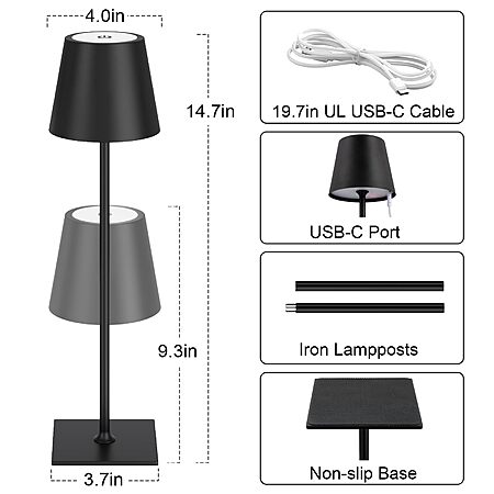 Prime Members: 2-Pack Kakanuo 5000mAh Rechargeable Dimmable Table Lamp (Black)
