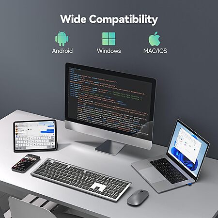 - 【Broad Compatibility】TECKNET slim wireless keyboard compatible with Windows, iOS, macOS, and Android, this wireless bluetooth keyboard is perfect for a wide range of devices including iPads, tablets, smartphones, laptops, desktops, and smart TVs. For devices without Bluetooth, simply use the included USB receiver for a stable connection
