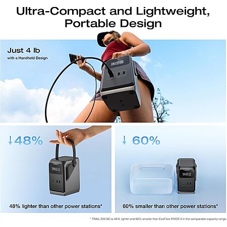 EF ECOFLOW TRAIL 200 DC Portable Power Station, 192Wh LiFePO4 Battery $89.28