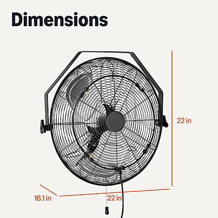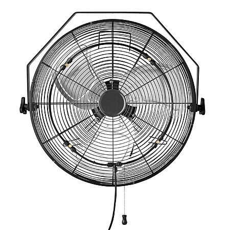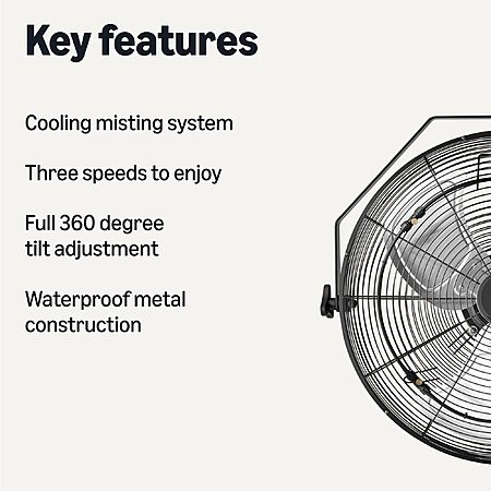 Model: Amazon Basics 18" Outdoor Misting Fan, Wall-Mounted, Industrial Fan, Waterproof (IP44), With Tilt Head, Heavy-Duty Metal Blades, Dual Ball Bearing Motor, 3 Speeds Up to 1550 RPM and 3781 CFM, Black