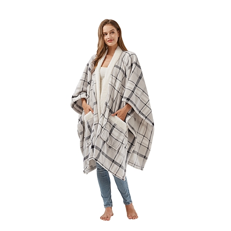 Premier Comfort Cozy Plush Printed Wrap, 50" x 70", Exclusively at Macy's - Grey Plaid $14.99