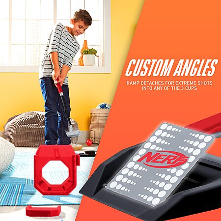 - ALL-IN-ONE SET: This set comes complete with (1) adjustable length putter, (1) putting ramp, (3) challenge cups, and (4) NERF golf balls so you'll have everything you need to create your very own trick shot holes!