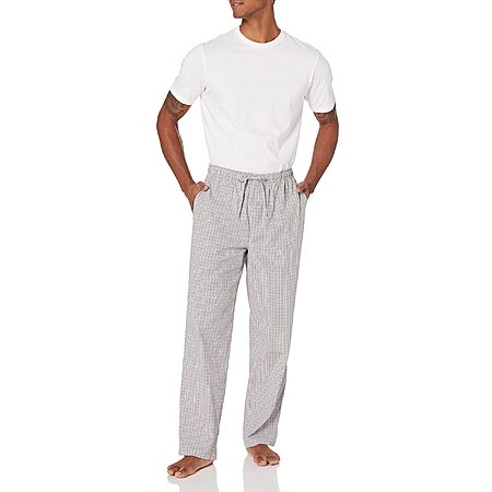 Amazon Essentials 100% Cotton Men's Straight-Fit Woven Pajama Pant with Pockets, Grey Plaid, Large ($10.43 after Clip 'n Save Coupon and Free Prime Ship)