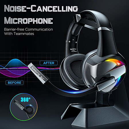 | Product Description: | Be an excellent Gaming Headset for PS5, PS4, Xbox One PC Laptop Mac Nintendo Switch: High precision 50 mm driver, Creates a unique auditory experience for you, brings real dynamic game sound effects and heavy bass, and captures all kinds of detailed sounds to give you an immersive feeling. Multi-Platform Compatibility: This gaming headset with a 3.5 mm audio jack is compatible with a connector, it is suitable for PS4, PS5, Xbox One, Nintendo Switch, PC, Laptop, PSP, iPad, Mobile Phone, etc. (The older version of Xbox One needs an extra Microsoft adapter, not included). Headphone earcups are designed with soft leather and ultra-soft memory foam pads to reduce head pressure and fit a variety of head shapes. Glaring RGB LED lights are designed on the earcups, highlighting the atmosphere of the game. The line is equipped with rotary volume control, and one key Mic mute, more convenient to use Exquisite. Specification: Headphone Driver: 50 mm Frequency Range: 20 Hz - 20 KHz Impedance: 32 Ohm +/- 15% Sensitivity: 105 +/- 3dB Input Power: 20 mW Cable Length: 7.22 Ft/2.2 m Approx Weight: 12 Oz LED Working voltage: DC 5 V +/- 5% Microphone Microphone sensitivity: -38 +/- 3 dB Pick-up Pattern: Omnidirectional Headset Jack: USB +/- 3.5 mm 4 Pin" High-precision 50 mm driver gaming headset Multi-platform compatibility gaming headphones Glaring RGB LED lights are designed on the earcups |