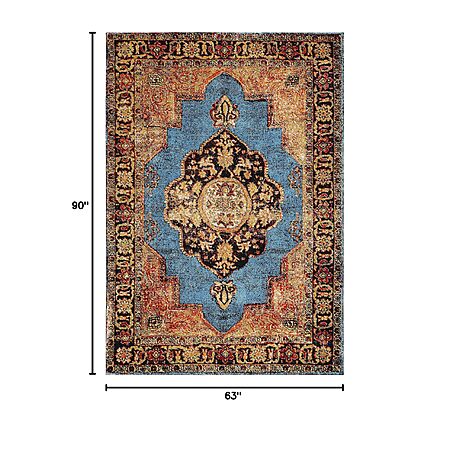[$89.99]SAFAVIEH Vintage Hamadan Collection Area Rug - 5'3" x 7'6", Gold & Light Blue