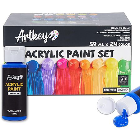 Amazon has 24-Count Artkey Acrylic Paint Set (2-oz each) on sale for $12.22. Shipping is free w/ Prime or on orders $35+.
