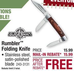 Menards Free (in store credit) after Rebate Guidesman Rumbler 3-Blade Folding Knife