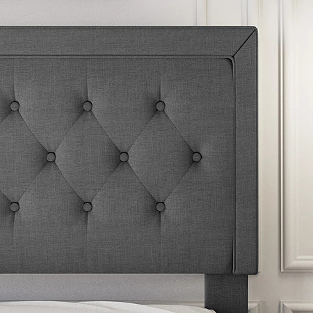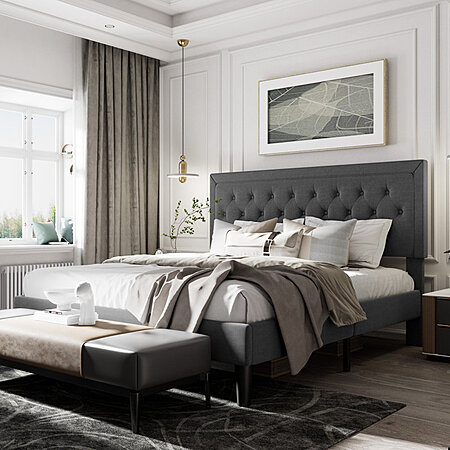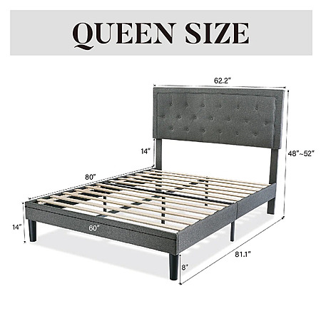 Mercury Row Hegg Linen Tufted Upholstered Platform Bed w/ Wood Slats Headboard Included (Queen, Dark Grey) $179.99 + Free Shipping