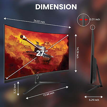 | Product Description: | 🎖️CRUA 27" Gaming monitor-Dominate your gaming world! Experience superior visuals with the CRUA 27" desktop PC monitor. Enjoy stunning 1080P resolution, a fast 180Hz refresh rate, and a professional-grade VA panel with 120% sRGB color gamut. The 1800R curved design and borderless screen provide an immersive viewing experience. AMD FreeSync ensures smooth and tear-free gaming. Connect easily with HDMI 1.4 (120Hz) or DP 1.2 (180Hz). Enhance audio with the audio output interface. Upgrade your visual experience with the CRUA 27" monitor. ✨Specification: >Screen Size:27 Inch >Panel Type:VA >Resolution:1920x1080p/FHD >Aspect Ratio:FullHD 16:9 >Brightness [Typical Value]:250cd/㎡ >Contrast Ratio[Typical Value]:3000:1 (Typ.) (TM) >Color Gamut:99% SRGB,8-bit 16.7M >Response Time :1ms(GTG) >Maximum Refresh Rate:180Hz >Weight:8.27 lb >Wall mount:100 x 100mm >Angle Adjustment:Tilt adjusted back and forth -5~15° >Ports: HDMI 1.4×1,DP 1.2×1,AUDIO×1 ✨Package List: Monitor × 1 HDMI 1.4 cable,1.5m × 1 DP 1.2 cable,1.5m × 1 Power adapter × 1(12V 4A) User manual × 1 Screws(Including Wall mounting screws) ⭐180HZ Computer Monitor : 27inch 1920 x 1080 curved monitor,high resolution and ultra-fast 180Hz refresh rate, 1ms(GTG) response time, dynamic contrast ensures lighter and darker areas with stable expansion, elevate your gaming experience. ⭐180HZ Computer Monitor : 27inch 1920 x 1080 curved monitor,high resolution and ultra-fast 180Hz refresh rate,1ms(GTG) response time, dynamic contrast ensures lighter and darker areas with stable expansion,elevate your gaming experience. 🎞️Realistic View : Multi-mode for different usage scenarios.99% sRGB color gamut with Flicker-free technology and blue light filter for comfortable viewing all day.Even browsing content for long time can goes easy on your eyes. 🎥Multiple Scenarios : PC Monitor setup for your gaming console, home office, watch the movie, extend laptop. Support HDMI(up to 120HZ), DP(up to 180HZ).Whether you're connecting a gaming console, PC, or external speakers, it ensures easy setup and versatility. 👀Flexible Viewing Options: Adjust your screen to find the perfect angle with tilt adjustments from -5 to 15 degrees. Its slim profile and VESA-compatible design (100 x 100mm) also make it ideal for wall mounting to save space and optimize your setup. 💡Warranty Policy : Warranty Policy : Enjoy a one-year warranty from the purchase date, covering quality issues like accessory damage (excluding lost items or logistics-related screen damage). For assistance,please feel free to contact us via the Seller information. |