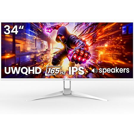 CRUA 34'' White Gaming Monitor, 165HZ/144HZ WQHD (3440x1440P) IPS UltraWide