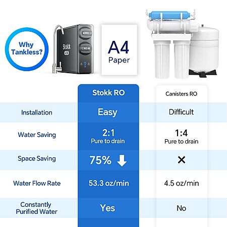 Sing Tao via Amazon[amazon.com] has Stokk Reverse Osmosis System, 8 Stage Tankless Reverse Osmosis Water Filter Under Sink RO System for $109.99. Shipping is free.