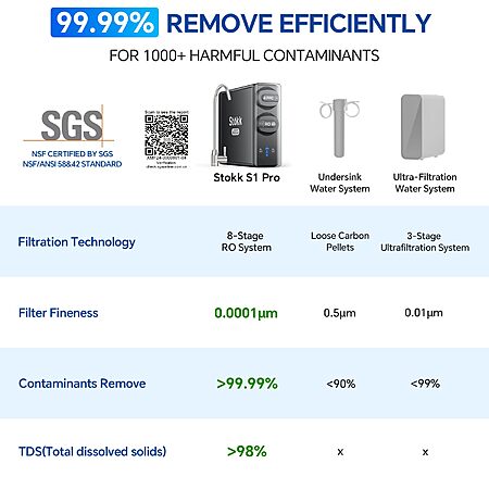 Model: Stokk Reverse Osmosis System, 8 Stage Tankless Reverse Osmosis Water Filter, Reduces PFAS TDS, Under Sink RO System, 2:1 Pure to Drain, NSF/ANSI 58& 42, FCC Listed (600GPD, Grey)