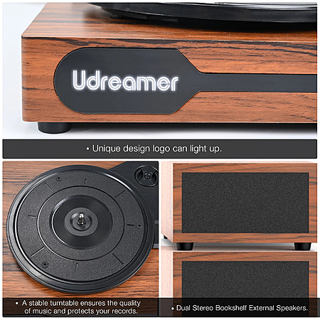 Udreamer Record Player w/ Speakers (Brown) $65.59 + Free Shipping