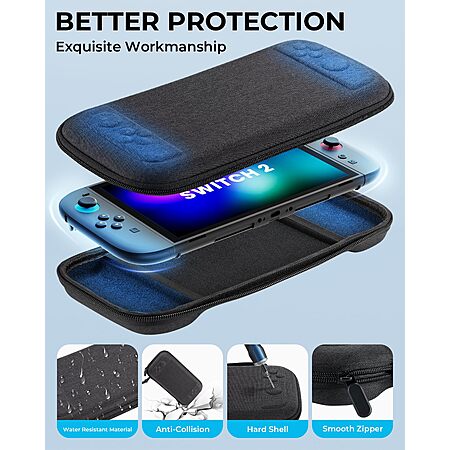 Accessories Bundle for Nintendo Switch 2 (Black-Slim Case Bundle) w/ Carry Case, Thumb Grips, Screen Protector, and Clear Shell $9.99 + Free Shipping w/ Prime or on $35+