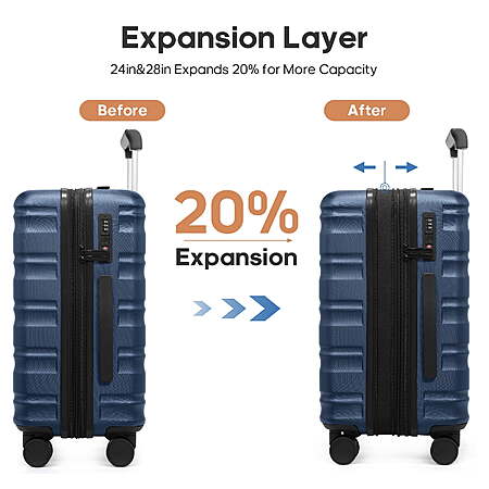 Expandable Capacity: The 24-inch and 28-inch suitcases offer a 20% expandable capacity, accommodating additional travel essentials when needed.