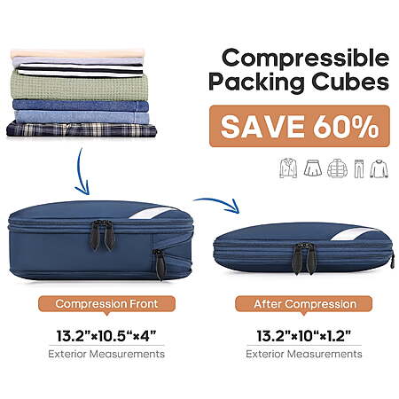 Versatile Accessories: Includes a spacious handbag and compressible packing cubes for organized packing and easy storage of items.