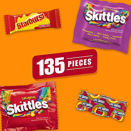 Amazon has 45.85-Oz 135-Ct Skittles Original, Wild Berry, Starburst & Life Savers Hard Candy for $9.47 - $0.47 off when you check out via Subscribe & Save = $9. Shipping is free with Prime or on $35+ orders.