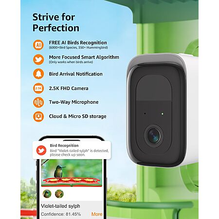 - No subscription smart AI filter technology only record birds then identify them. You will learn different species of birds and say goodbye to annoying notifications.