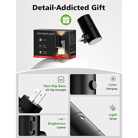 JOFIOS via Amazon [amazon.com] has 4-Pack JOFIOS Dimmable LED Wall Plug Night Lights w/ Sensor (Black) on sale for $22.99 - 50% off when you enter the coupon code 8KEWMJPR = $11.49. Shipping is free w/ Prime or on $35+.