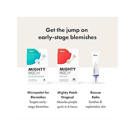 Hero Cosmetics Mighty Patch Micropoint™ for Blemishes - Hydrocolloid Acne Spot Treatment Patch for Early Stage Zits and Hidden Pimples, 395 Proprietary Micropoints (8 Count) $8