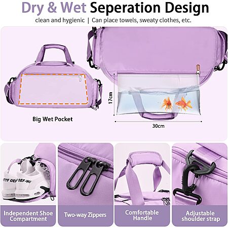 FIORETTO 30L Sports Gym Duffle Bag with Wet Pocket & Shoe Compartment, Weekender Hospital Overnight Bag for Women, Sports Holdall Backpack $9.99