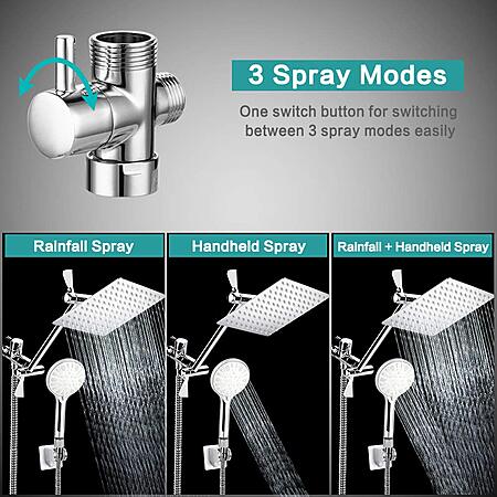 $27.99*: 8" Tudoccy Rainfall Square Shower Head & 4.5" Handheld Combo w/ 11" Extension Arm at Amazon