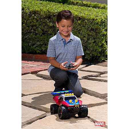 Authentically licensed product from Marvel. Fully functioning with innovative technology. Users get a premium decorated RC Buggy measuring approximately 10" and a real working suspension. 2.4 GHz frequency enables up to 16+ players to play at a range of 100 feet. Product comes ready to play out of the box. Simple and convenient recharging with USB technology. Batteries included for the remote controller. Ages 6+