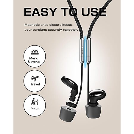 Selouj Anti-Loss Reusable Earplugs w/ Cord & 7 Pair Eartips (Black) on sale for $24.99 - $3.75 off when you clip the coupon on the Product Page - $12.50 off when you apply promo code