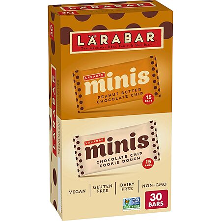 30-Count LÄRABAR Mini Bars Pack (PB Chocolate Chip, Chocolate Chip Cookie Dough) $10.86 w/ Subscribe & Save. Shipping is Free w/ Prime or on $35+