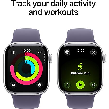 Best Buy has 42mm Apple Watch Series 11 GPS Smartwatch w/ Silver Aluminum Case & Purple Fog Sport Band (S/M, MEU64LW/A, 2025) on sale for $299. Shipping is free or select free store pickup where available.