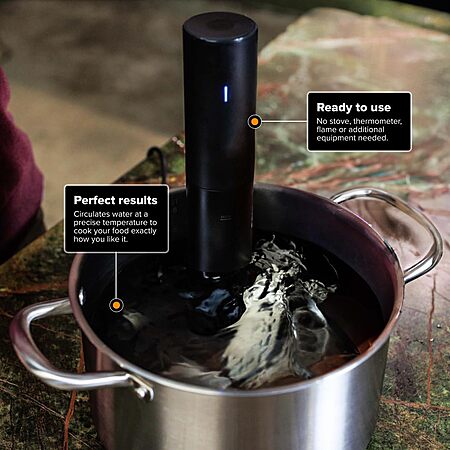 • Easy: Three easy steps: 1) Attach your cooker to a water filled pot. 2) Set the time and temperature 3) Seal the food, add it to the pot, and press start on the app.