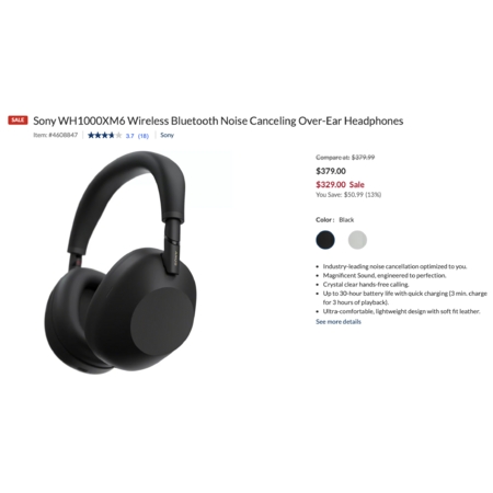 New: Sony WH-1000XM6 - Tax-Free + Free S&H - Gov/Mil/Vet Only $329