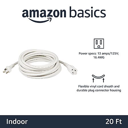 2-Pack 20' Amazon Basics 13 Amps 125V Extension Cord (White or Black)
